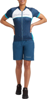 Dámsky cyklistický dres podporí špičkové výkony v cyklistike. Priliehavý strih a materiál s technológiou Dry Plus Eco s rýchlym odvodom potu udržia telo v suchu a komforte. Aby bolo zaistené, že dres sedí pevne na svojom mieste po celú dobu, je opatrený protišmykovou gumou na páse. Vrecko na zips vzadu a reflexné prvky.